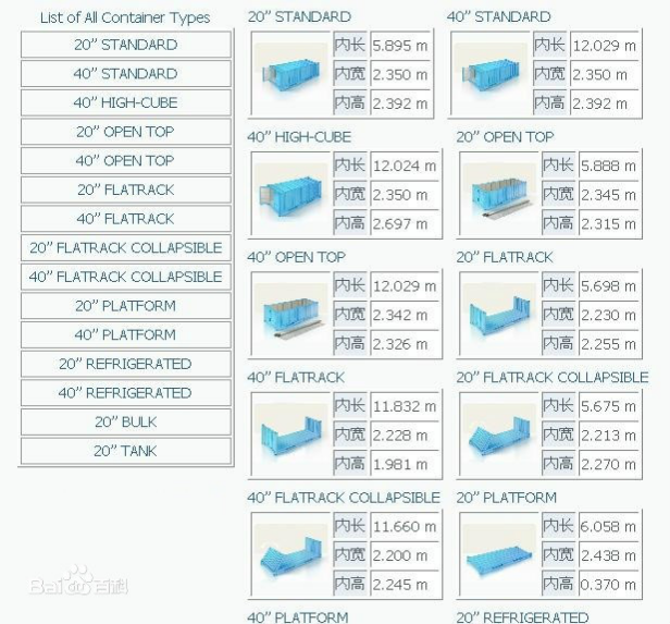 集裝箱外尺寸,(container's overall external dimensions)包括集裝箱*性附件在內(nèi)的集裝箱外部*的長(zhǎng)、寬、高尺寸。