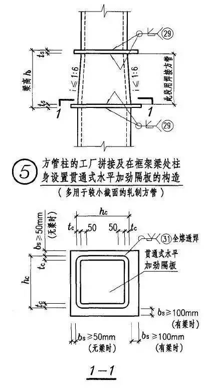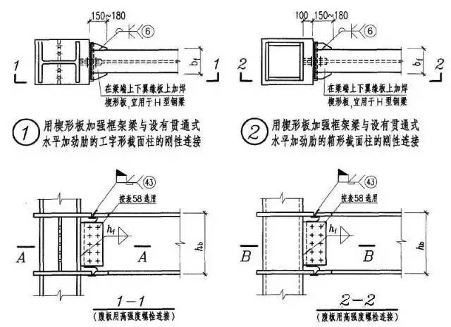 1)工字形梁與工字形柱或箱形柱剛性連接的細(xì)部構(gòu)造;
