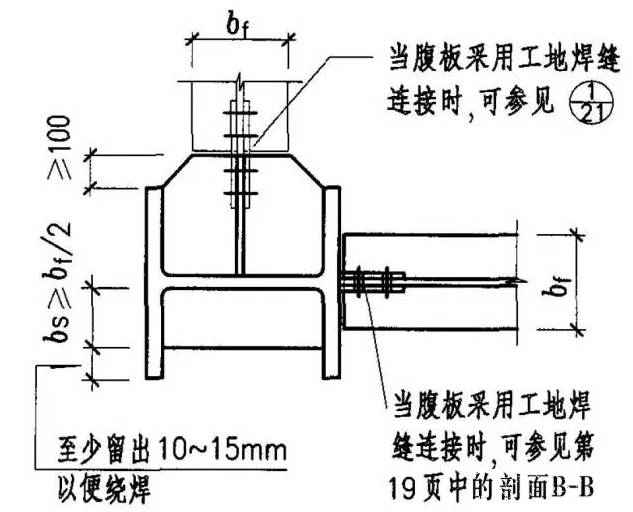 2)工字形柱和箱形柱通過(guò)帶懸臂梁段與框架梁連接時(shí),構(gòu)造措施有兩種: